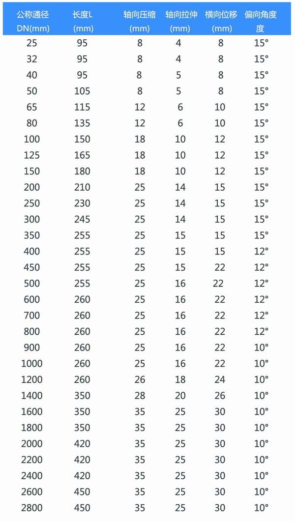 骨架層——丁基橡膠+氯丁橡膠+聚酯簾布;骨架材料選用強力高,斷裂強度≥190cN/tex,斷裂應(yīng)力≥2.76GPa,彈性模量≥44N/tex,斷裂伸長率≥4%聚酯簾布。使內(nèi)外層與骨架層的緊密結(jié)合,經(jīng)過硫化成為一體,解決了橡膠接頭的熱伸脹及整體附著強度和耐壓性能,保證足夠的承受其真空度和水錘沖擊能力。